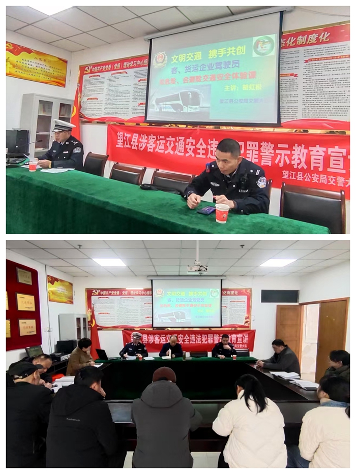 為深入貫徹落實(shí)道路交通安全專項(xiàng)整治行動(dòng)部署要求,切實(shí)強(qiáng)化客運(yùn)企業(yè)源頭安全管理,3月13日上午,望江縣交警宣教部門(mén)聯(lián)合望江客運(yùn)分公司開(kāi)展涉客運(yùn)交通安全違法犯罪警示教育宣講活動(dòng),分公司安全管理人員積極參與。