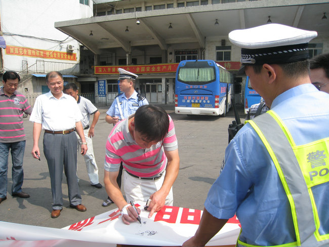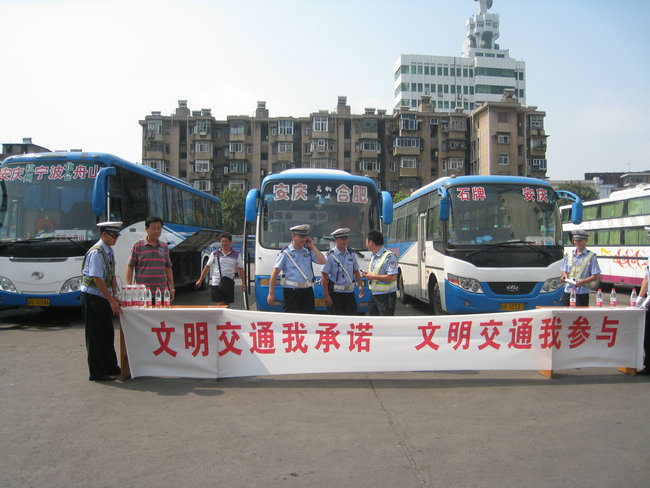 9月4日,市客運分公司與交警支隊二大隊在安慶汽車站停車場內(nèi)開展“文明交通我承諾,文明交通我參與”駕駛員簽名活動。活動首先由交警支隊二大隊二中隊楊指導(dǎo)員宣傳5種易發(fā)生道路交通事故的不良及違法駕駛行為,楊指要求駕駛員駕駛車輛做到:不超員、不超速、不疲勞駕駛、不酒后駕駛、不無證駕駛,做文明禮讓安全行車的文明駕駛員;隨后進(jìn)行了駕駛員簽名,市客運分公司110名未當(dāng)班的駕駛員參加了本次簽名活動。
