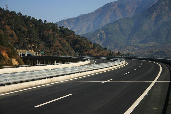 飛速車內(nèi)習(xí)習(xí)涼氣與車外秋初焦灼的熱浪形成鮮明的反差,此時(shí)此刻,我內(nèi)心真的不知道是燥熱還是涼爽?隨著車子漸行漸遠(yuǎn),不知不覺穿過(guò)了第一座高速隧道,這也是我首次經(jīng)歷的第一座公路隧道,隧道內(nèi)雖然不太明亮,但還是可以滿足正常通行照明的需要。因?yàn)槭鞘状瓮ㄟ^(guò)隧道,盡管不感到特別陰森恐懼,但還是免不了有點(diǎn)怯怯諾諾的失態(tài)之舉,此時(shí)的我立刻有種與世隔絕別樣的感覺,似乎太像一位沒有見過(guò)太多世面的羞澀“孩童”了!同時(shí)也喟嘆人類力量的偉大和巧奪天工的壯舉!正于一位偉人所斷言的那樣——上天可攬九月,在下可五洋捉鱉!可我還想補(bǔ)充一句——逢山可洞穿山神!從車窗遠(yuǎn)望去,那高聳云端的立柱橋蹬屹立在巍峨的群山叢嶺之間,架起一條高速‘玉帶’,我情不自禁地脫口而出——一橋飛架南北天塹變通途!